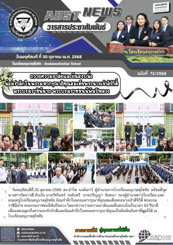 ถวายความอาลัยและยืนสงบนิ่ง น้อมรำลึกในพระมหากรุณาธิคุณสมเด็จพระนางเจ้าสิริกิติ์ พระบรมราชินีนาถ พระบรมราชชนนีพันปีหลวง