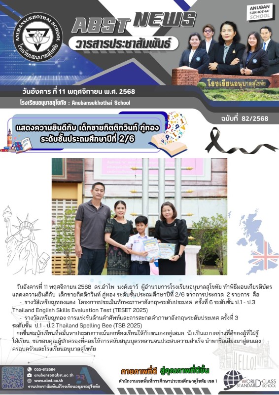 แสดงความยินดีกับ เด็กชายกิตติกวินท์ ภู่ทอง ระดับชั้นประถมศึกษาปีที่ 2/6