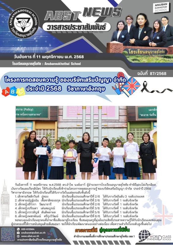 โครงการทดสอบความรู้ ของบริษัทเสริมปัญญา จำกัด ประจำปี 2568 วิชาภาษาอังกฤษ