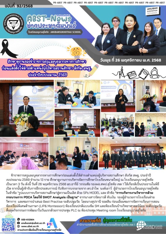 ศึกษาดูงานของข้าราชการครูและบุคลากรทางการศึกษา ก่อนแต่งตั้งให้ดำรงตำแหน่งผู้บริหารสถานศึกษา สังกัด สพฐ. ประจำปีงบประมาณ 2569