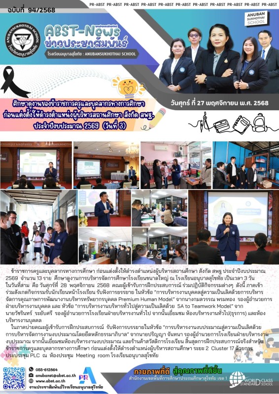 ศึกษาดูงานของข้าราชการครูและบุคลากรทางการศึกษา ก่อนแต่งตั้งให้ดำรงตำแหน่งผู้บริหารสถานศึกษา สังกัด สพฐ. ประจำปีงบประมาณ 2569 (วันที่ 3)