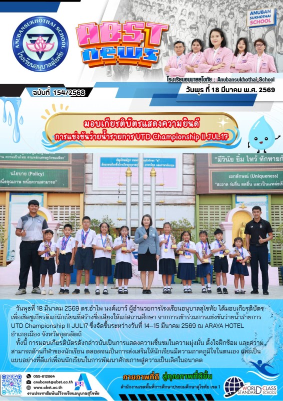 มอบเกียรติบัตรแสดงความยินดี การแข่งขันว่ายน้ำรายการ UTD Championship II JUL17