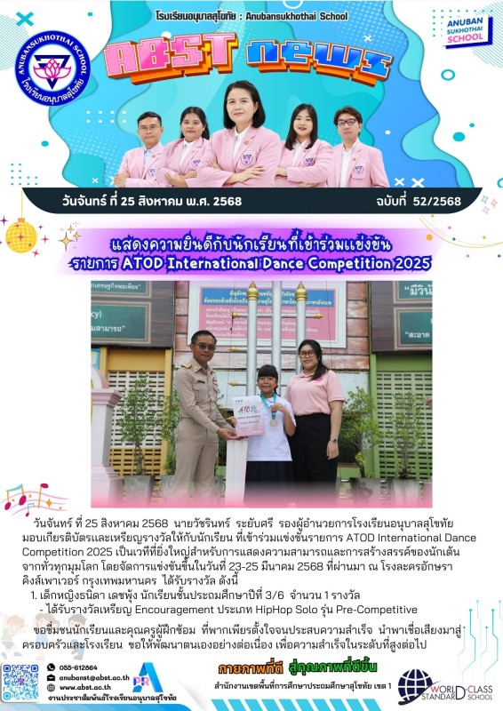 แสดงความยินดีกับนักเรียนที่เข้าร่วมเเข่งขัน รายการ ATOD International Dance Competition 2025