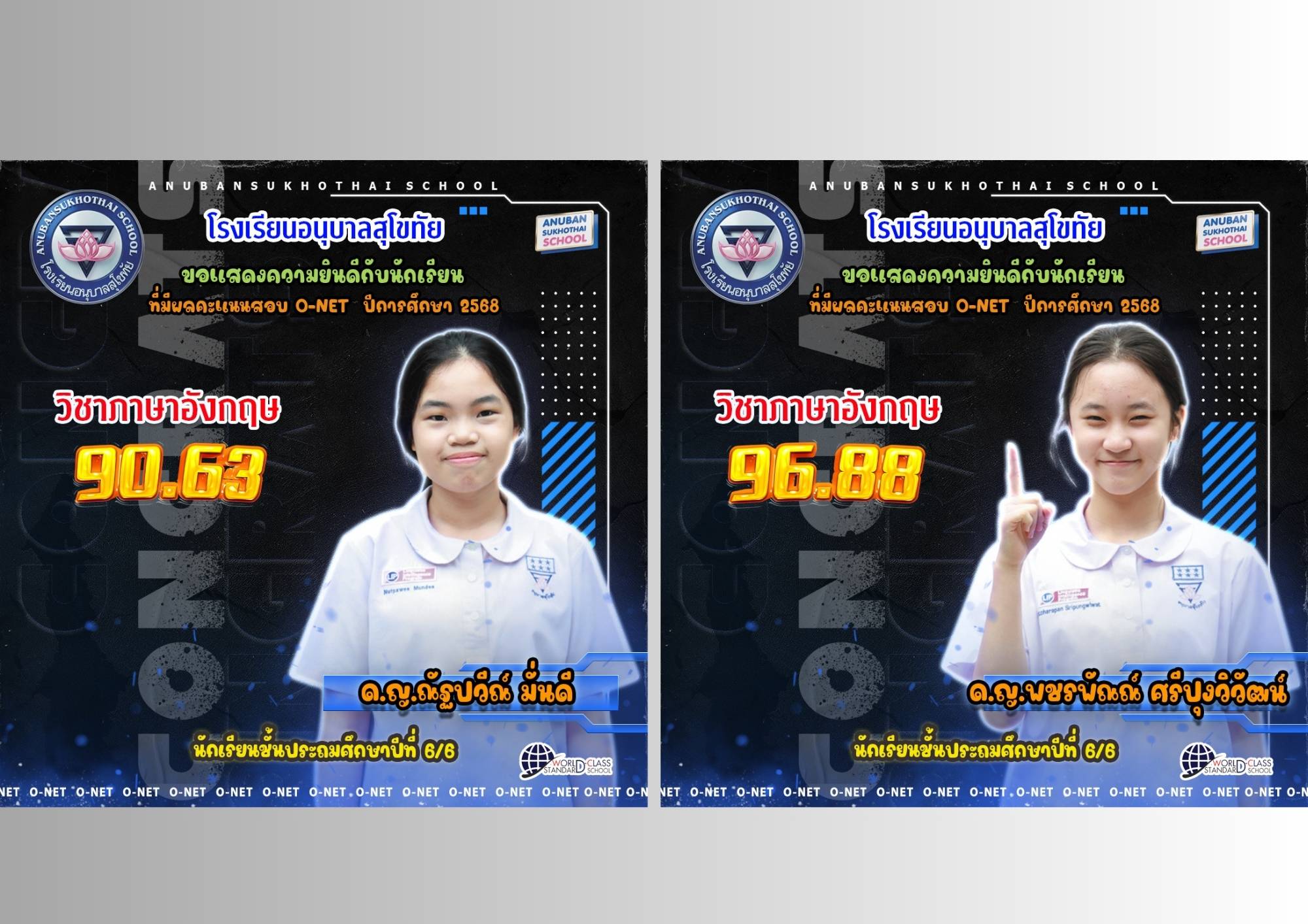 ขอแสดงความยินดีกับนักเรียนที่มีผลการทดสอบ NT คะแนนเต็ม 100 วิชาภาษาไทย