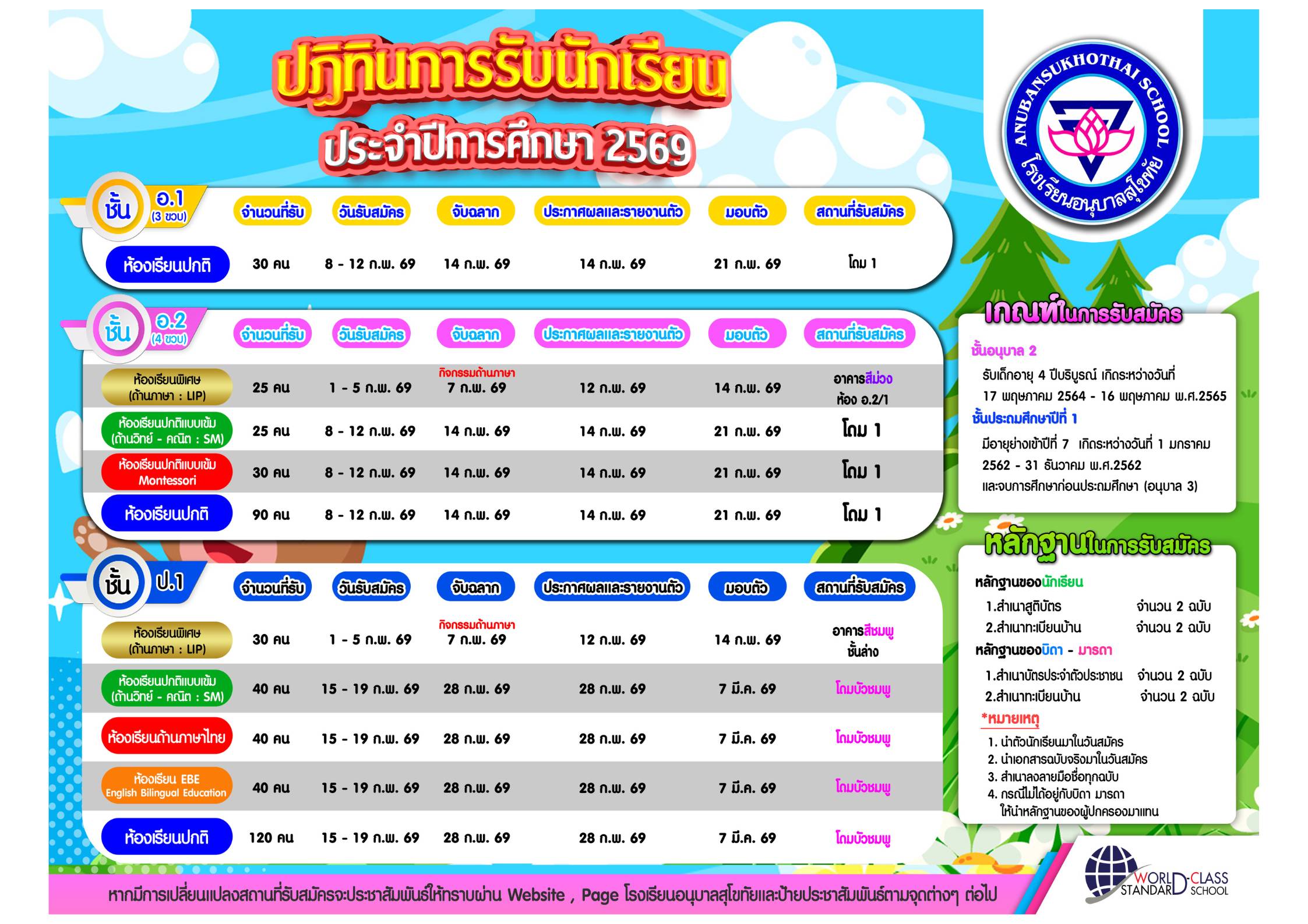 ประกาศโรงเรียนอนุบาลสุโขทัย เรื่อง การเก็บเงินบำรุงการศึกษาของสถานศึกษา (บิลใบหลัง) สำนักงานคณะกรรมการการศึกษาขั้นพื้นฐาน ปีการศึกษา 2569 รายละเอียดตามสิ่งที่แนบมานี้ 30 ม.ค. 69